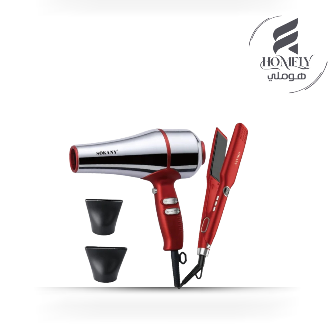 طقم سوكاني 2×1 استشوار استناليس 3600 وات + مكواة شعر موديل SK-14035