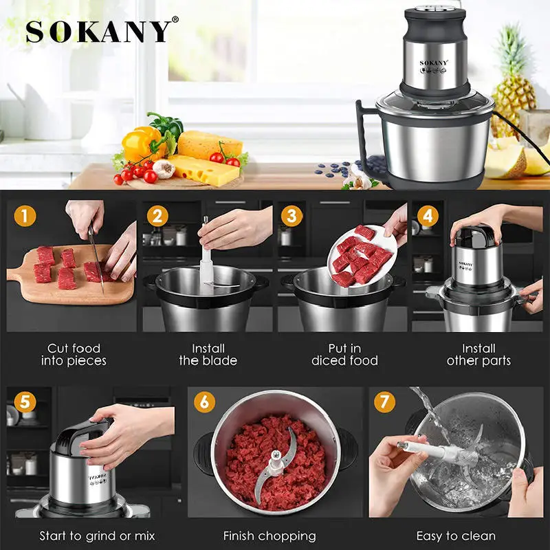 شفرات قوية لفرم الخضروات، اللحوم، التوابل بسهولة