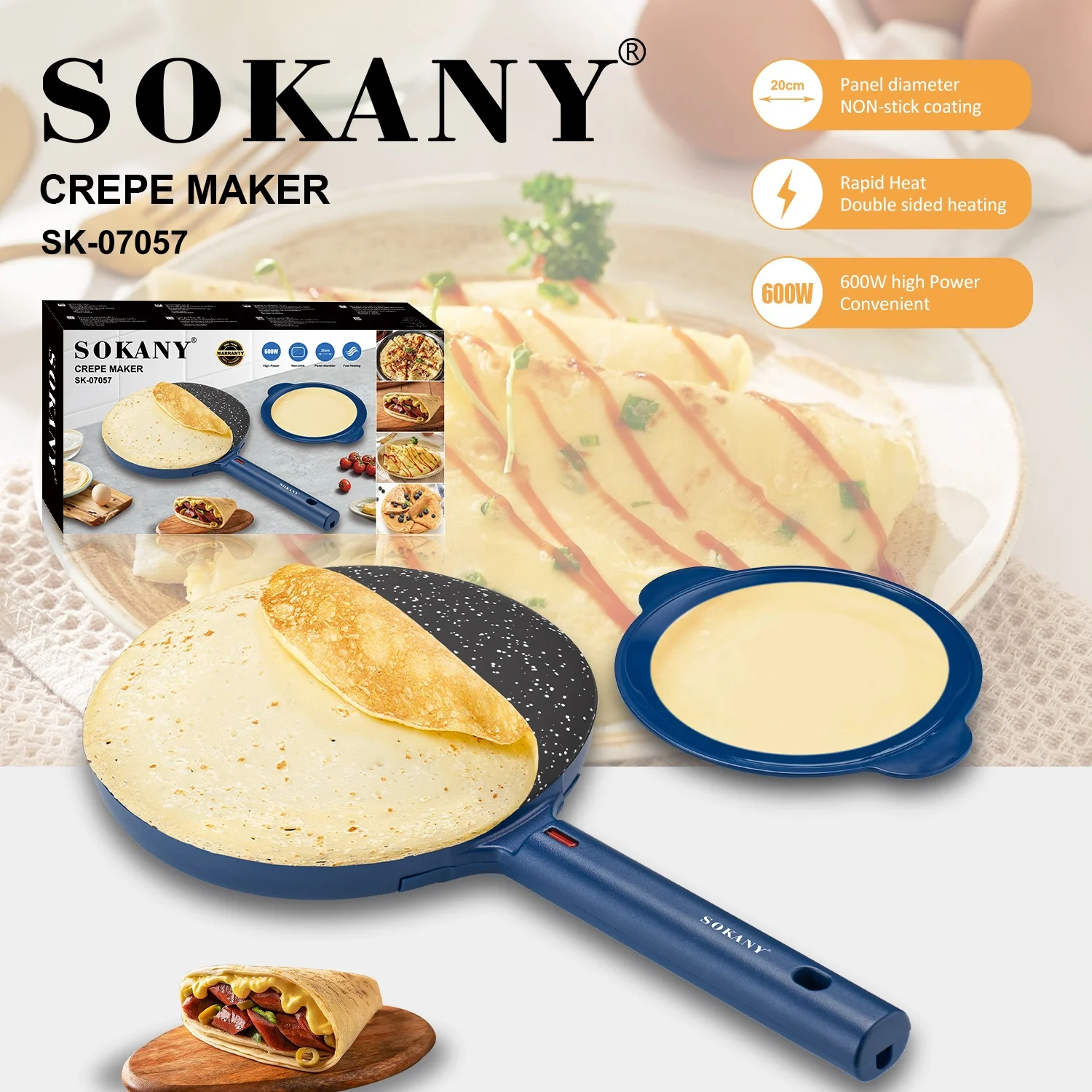 قدرة 600 وات لتحضير الكريب بسرعة وسهولة