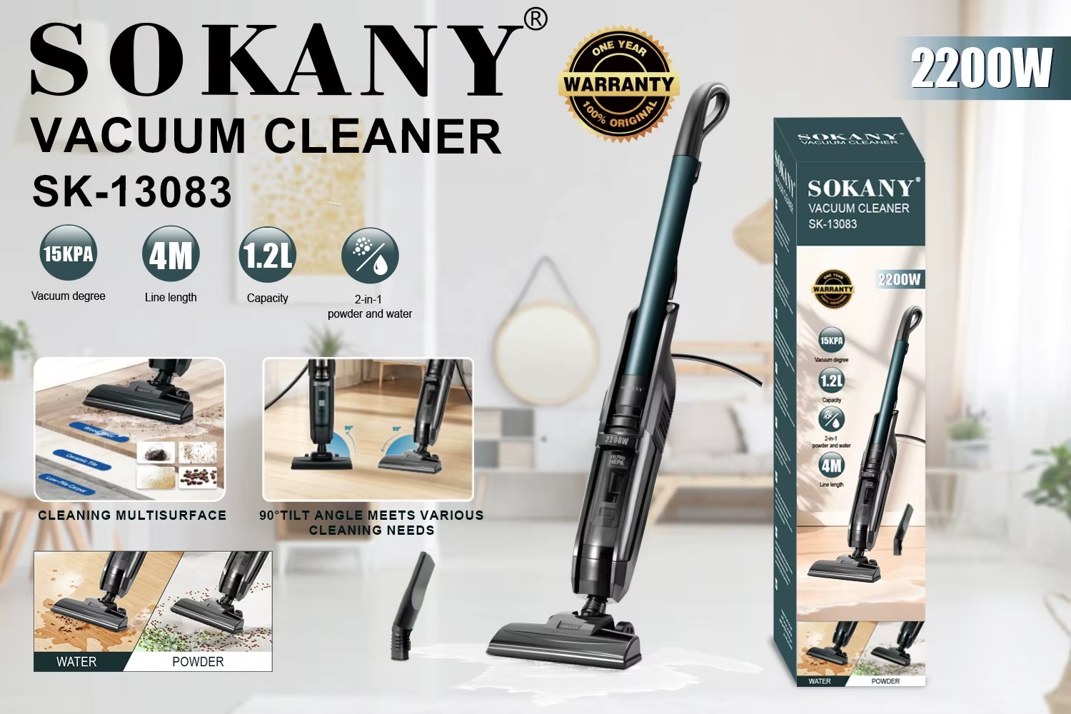 مكنسة سوكاني عمودية 2×1 للأتربة والسوائل بقدرة 2200 وات موديل SK-13083